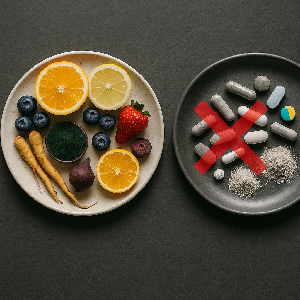 Most supplements use 5–10 synthetic ingredients. Elyxar delivers over 60 plant-based, bioavailable, clinical-grade nutrients — without the system's secrets.